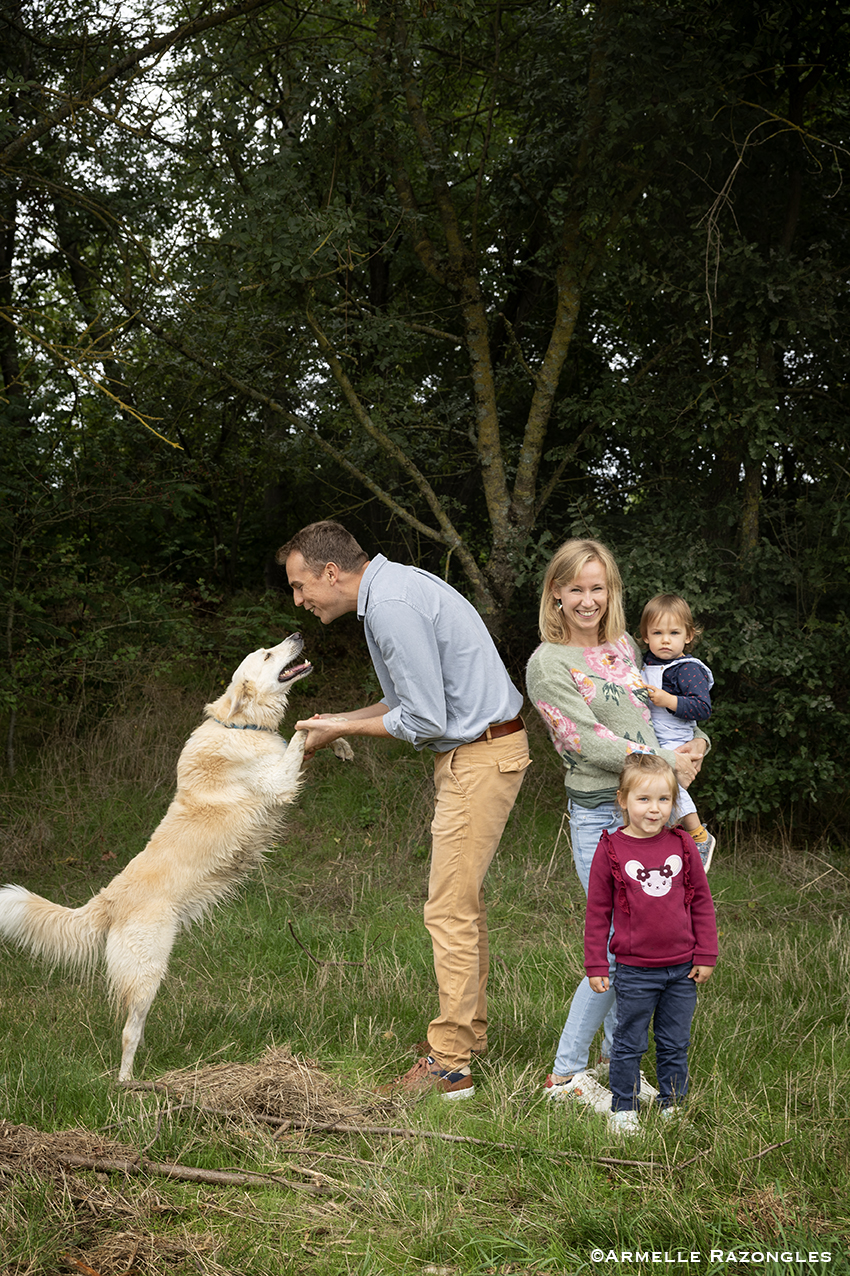 La séance photo de famille à Toulouse et dans les environs est l’occasion de photographier toute votre famille réunit et dans différentes combinaisons : père et mère, enfants seuls, père et fils, mère et fille(s), grands parents et petits enfants … etc. Une séance photo professionnelle est aussi l’occasion de penser à son animal de compagnie ; lui aussi a le droit d’être de la partie et d’avoir ses souvenirs photographiques.